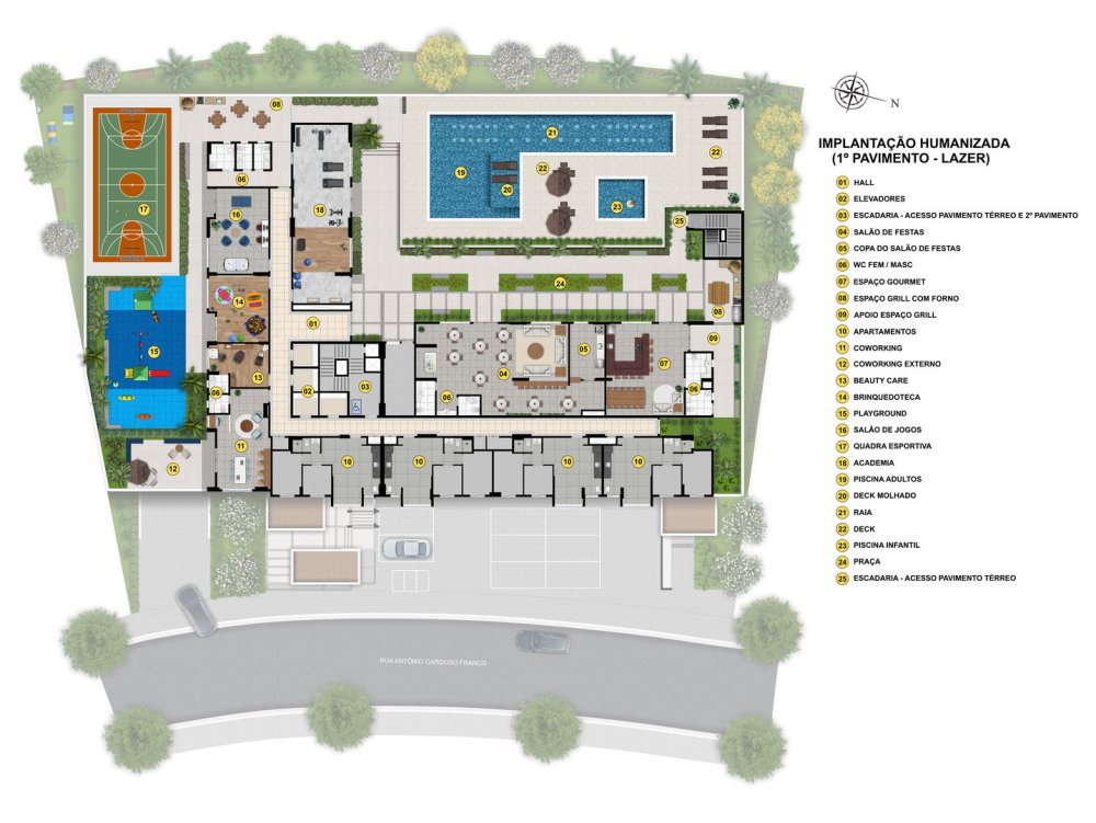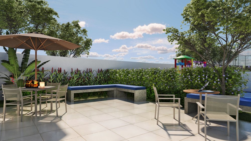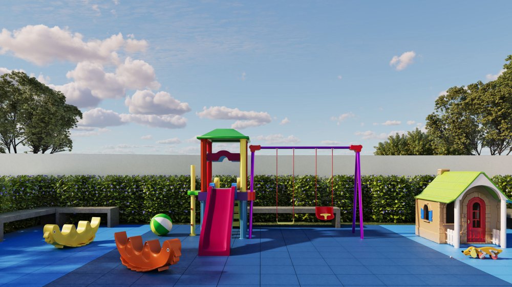 * Para a Família: Brinquedoteca, Playground, Churrasqueira, Salão de Festas e Salão de Jogos.