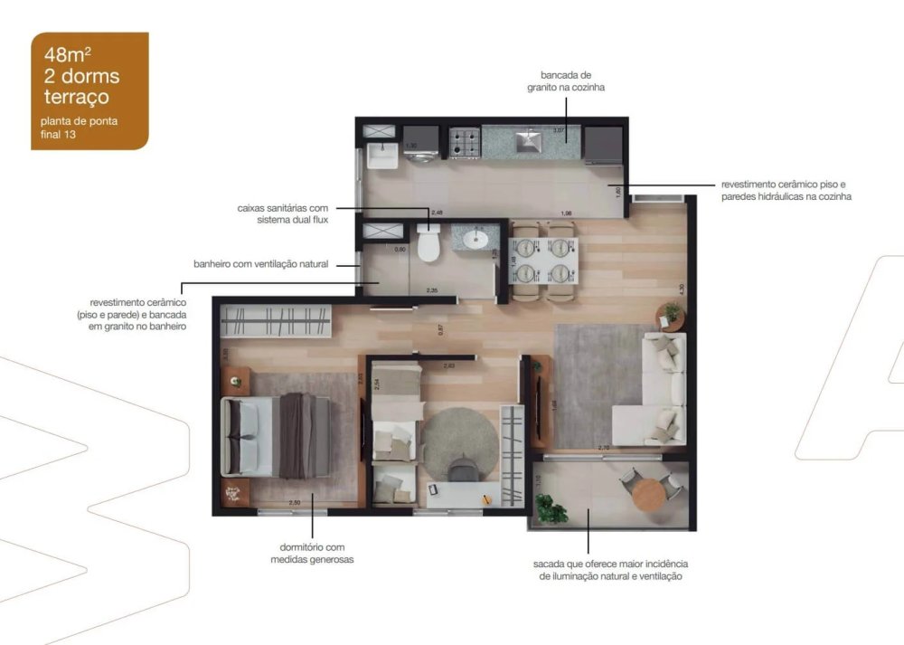 Apartamento à Venda com 2 dormitórios, 45,43 m²