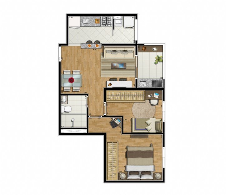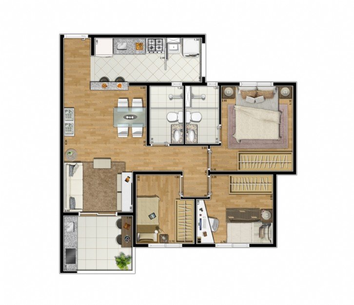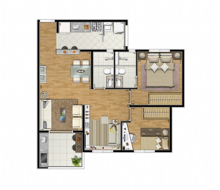 Com uma área privativa de 50,60m², este apartamento dispõe de 2 dormitórios, além de um banheiro social bem distribuído. As duas salas proporcionam ambientes distintos para relaxar e receber amigos, enquanto a varanda convida a momentos de tranquilidade e contemplação.