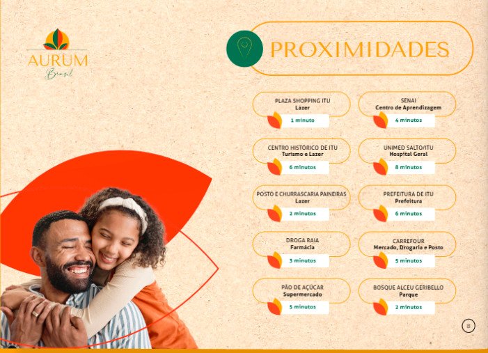 Além de todas as vantagens que o Residencial Aurum Brazil oferece, você estará próximo a tudo o que precisa para o seu dia a dia: