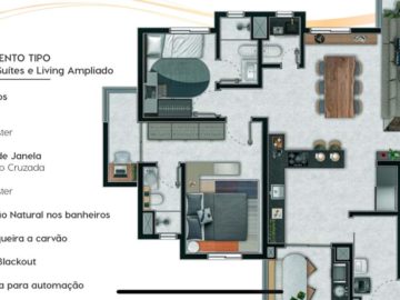 Este magnífico apartamento de 100.56m² de área privativa é perfeito para quem busca conforto e elegância. Desfrute de 3 suítes  ou 02 suites com living ampliado ,bem planejadas, 2 salas espaçosas e um lavabo charmoso, ideal para receber amigos e familiares. A sacada com churrasqueira é um convite para momentos inesquecíveis com uma vista privilegiada.