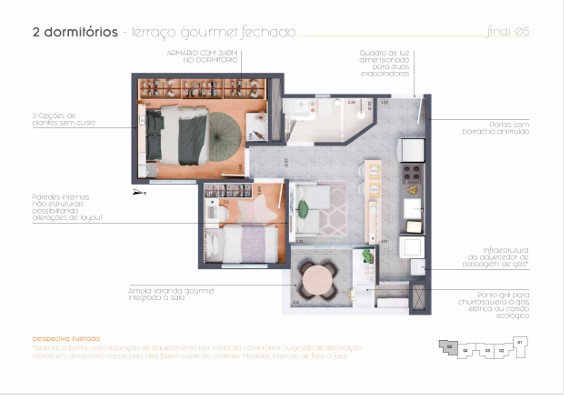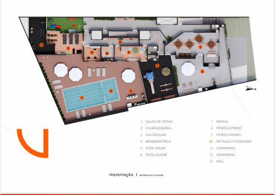 * Lazer: Academia, brinquedoteca, churrasqueira, espaço gourmet, lounge, piscina e playground.
