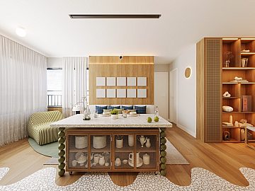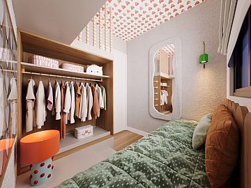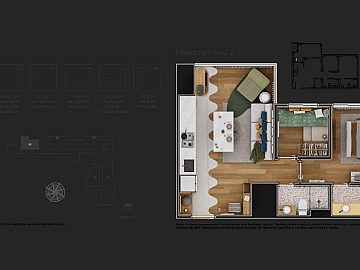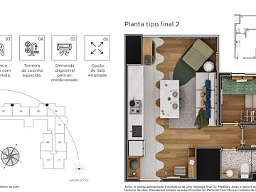 Com 43,27m² e 49,02 m² de área privativa, este espaço foi cuidadosamente projetado para o seu conforto. A suíte, um santuário particular, oferece momentos de relaxamento e privacidade. O segundo dormitório acolhe seus sonhos e projetos. As duas salas convidam a momentos de convívio e descontração.