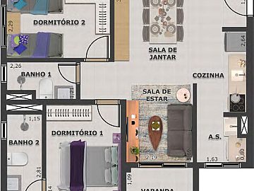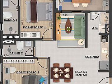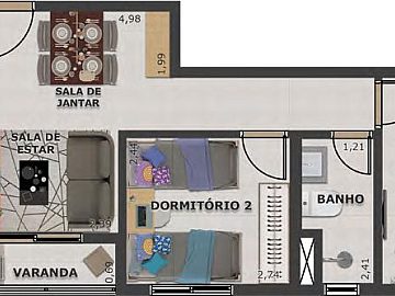 * 2 dormitórios, sendo 1 suíte,