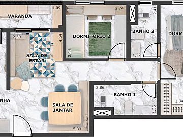 - Área Privativa: 74m²