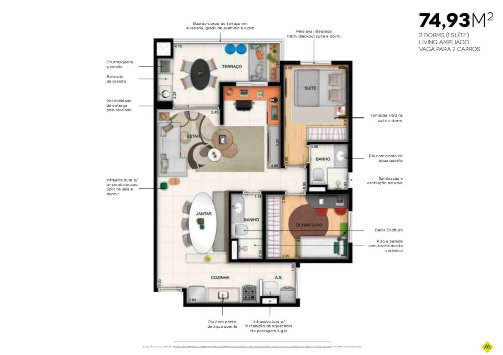 * 03 (2 dorms c/ suíte + HomeOffice) ou