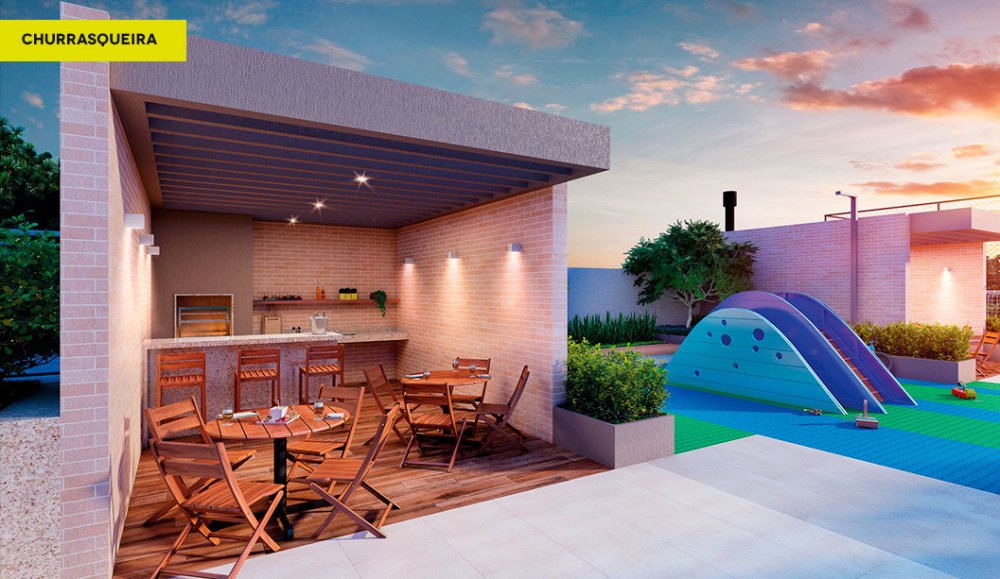 * 02 dorms. (1 suíte), terraço c/ churrasqueira a carvão, vaga p/ 1 ou 2 carros